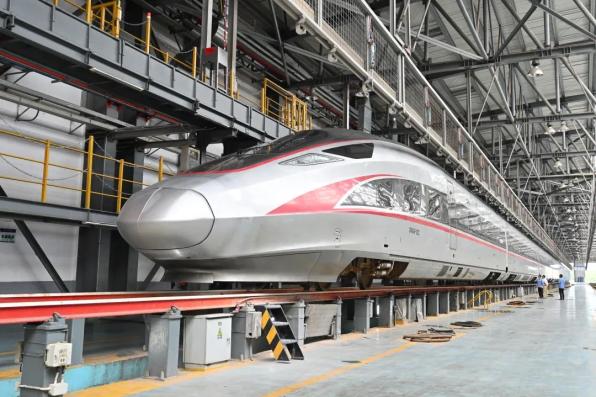 CR400AF动车组是时速350公里复兴号动车组两种车型之一,因车身有红色腰带被称为“中国红”。这个“新成员”不仅颜值高,列车综合运力得到显著提升,更好地满足长距离、长时间、复杂多样的高速运行需求。