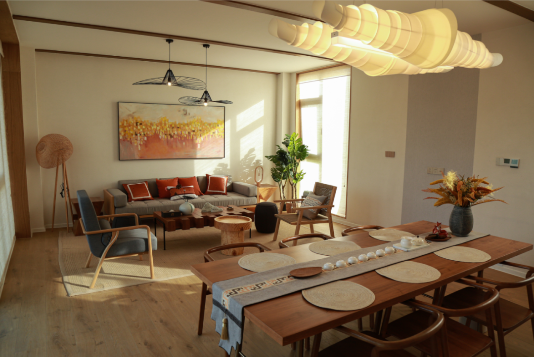 雲水间民宿位于泉庄镇崮群环抱中,东西南面都是梯田式果园,占地面积约42亩。民宿拥有32套奢华民宿和一套配套综合服务中心。整体的建筑风格为新中式建筑风格,贴合当地的生态环境,打造一个田园诗意的生活环境,内部分别用不同的7种装修风格,以满足各类人群的不同需求。雲水间以“花叶木”为主题,分为灼华野墅、木琼香居、叶蓁溪苑三个主题区,打造春夏秋缤纷景色。每个房间都有自己独特的名字,独有的故事,让每一栋房子都成为诗情画意的个体。