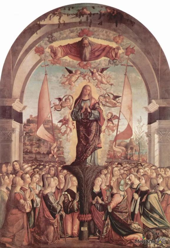 赞美圣厄休拉和她的同伴(油画,[意] 维托雷·卡尔帕乔 绘,1491年)我们还是回到文艺复兴时期的威尼斯。卡尔帕乔的多人物构图有一种魔法般的美。或许可以大胆称其为理想之美。面对他的作品,你会体验到一种等待天机泄露的紧张感。那一刻你不会明白,是什么造成了这样的心境:无法自拔地陷入这种气氛中,被画作震撼到心生恐惧。