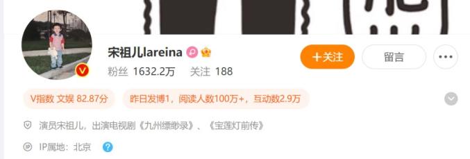童星出道的宋祖儿微博粉丝数达到1632.2万,猫眼专业版数据显示,宋祖儿上榜热搜累计1532条,主演超过23部剧集。