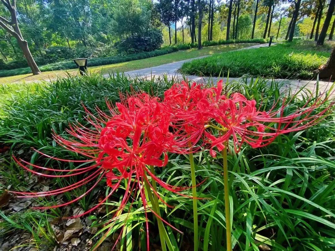简介:公园东门往西金莲湖段500平方米及东门往南至篮球场段3000平方米的林下进行了石蒜花球点种。共计种植海滨石蒜29500株、忽地笑29500株,彼岸花28500株,花期7月至10月。