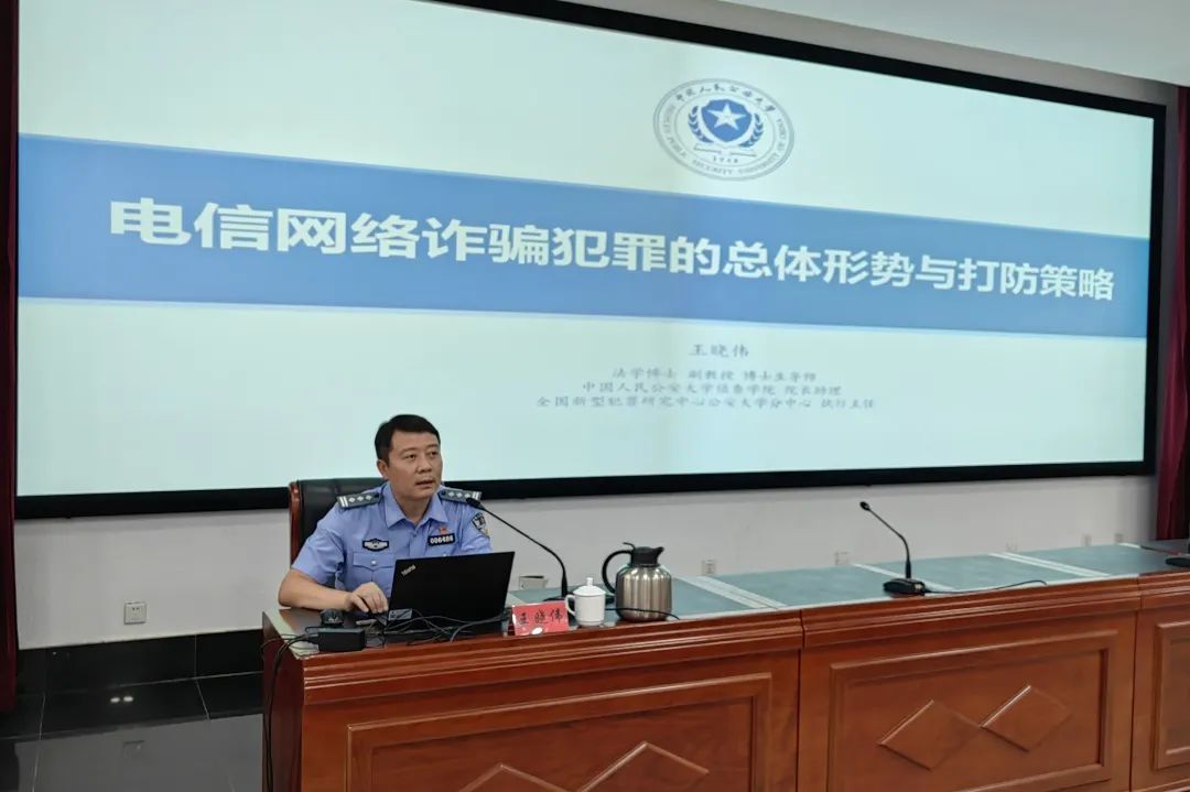 扫黑支队民警张继超利用《电信网络诈骗犯罪的总体形势与打防策略》课间休息时间与公安大学王晓伟副教授,就电信网络诈骗问题深入交流。机关党委(机关纪委)民警李春建说:“通过对化国宇副教授讲授的《习近平法治思想的核心要义》系统学习,我深刻领悟到习近平法治思想内涵丰富、论述深刻、逻辑严密、系统完备。作为一名公安民警,深感使命在心、重任在肩,将努力为建设法治国家、法治政府、法治社会贡献力量。”