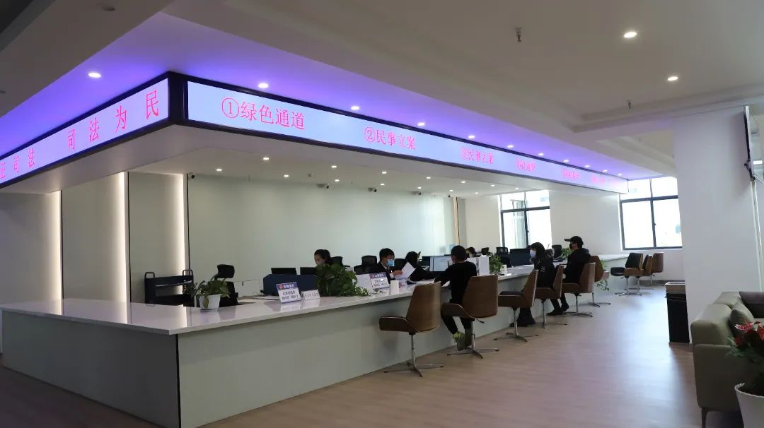 围绕多元解纷、分调裁审、立案服务等一体推进一站式诉讼服务中心建设,按照“集约高效、多元解纷、便民利民、智慧精准”标准设计改造成功的4000余平方米的诉讼服务大厅已投入使用。