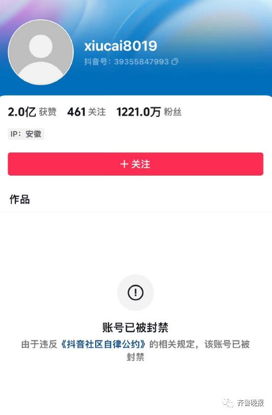 记者检索发现,在抖音上搜索“秀才”的账号,页面显示该账号已被封禁。