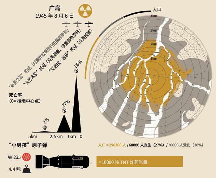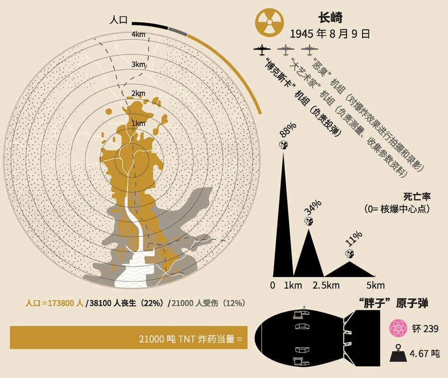 1945年8月6日和9日,广岛和长崎先后遭到原子弹的核打击。根据各种不同版本的伤亡统计材料,估计有10万至25万人死于核轰炸(1945年8—12月)。