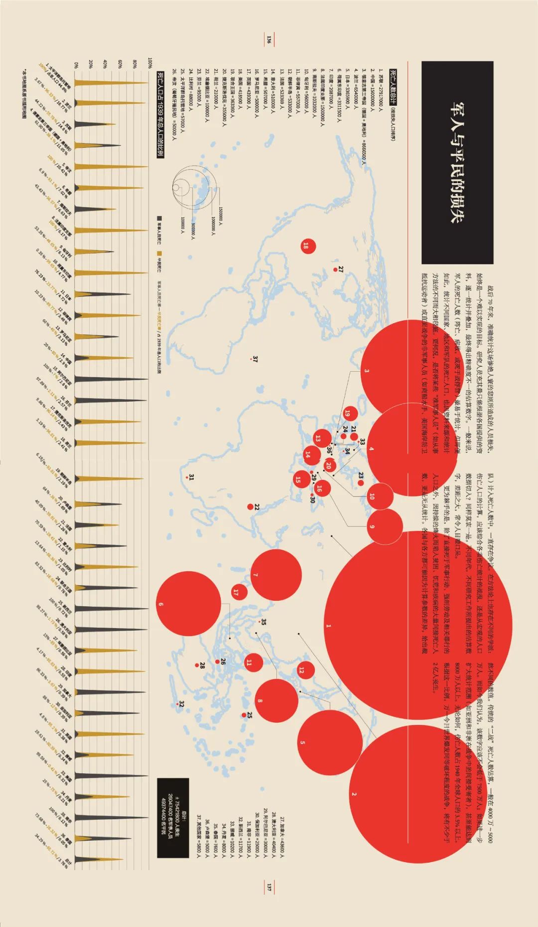 无论如何,伤亡人数占1940年全球人口的3.5%以上。根据这一比例,万一今日世界爆发同等破坏程度的战争,将有不少于2亿人丧生。