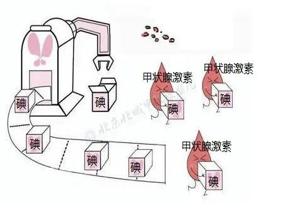 甲状腺是一个甲状腺激素合成工厂,每一个细胞就是一个车间。这个“车间”的原材料就是食物中的“碘”。正常情况下,车间根据市场供需(人体需求)调节产量。当车间功能异常时,这种调节受限,供大于求就是我们俗称的甲亢。