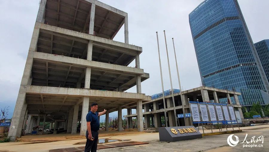“左侧是5号楼,共4层,目前已封顶;右侧是1号楼,建造至2层就停工了,再往后就是2、3号楼,都只建造完地下室。”站在已建设地面部分的两栋建筑前,江宏山公司负责人介绍道。