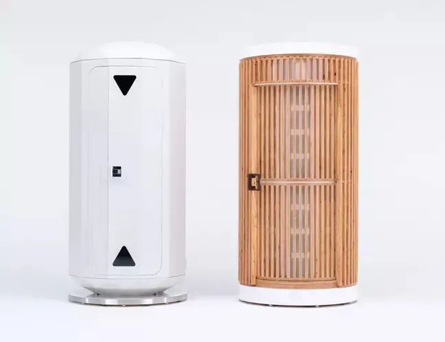 根据外观的不同,可以分为两种。一种是纯白色的,就像是科幻电影里走出来的,具有未来感;还有一种外部由木材包裹,看起来更贴近自然。