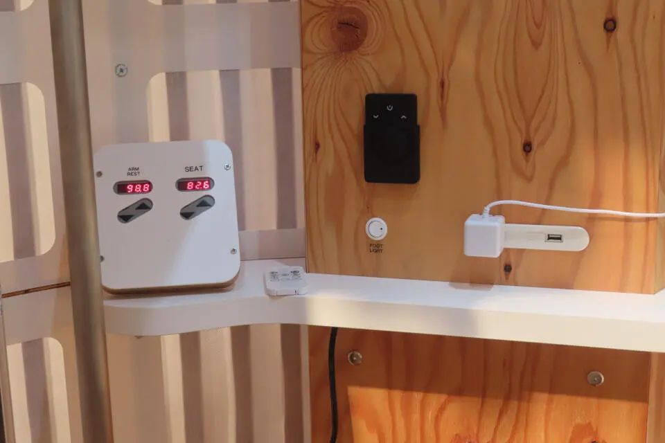 而且这些装置,都可以调节高度和角度,大部分人都可以在这个舱里找到一个完美的睡眠姿势,但身高超过 1.98米或体重超过100 公斤的人,不推荐使用睡眠舱。除此之外,睡眠舱还配备了灭火器、烟雾探测器、换气扇、衣服挂钩等设备,舱内的灯光、通风、温度也都是可以调节的。