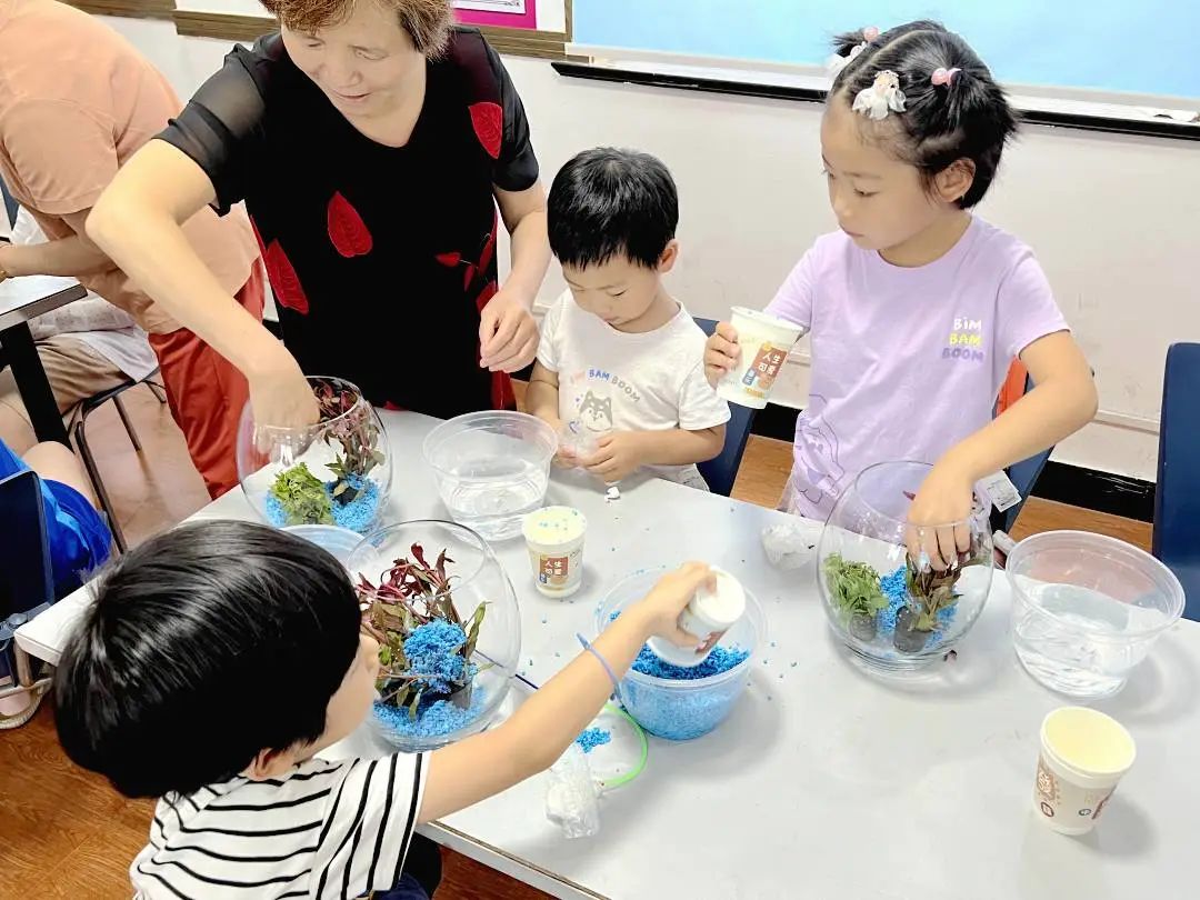 淡蓝的沙底,碧绿的水草,其间还有穿梭的小鱼,这样和谐动人的画面,让创造出它的孩子和家长们无比自豪。
