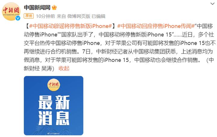7日,中新财经记者从中国移动集团获悉,上述消息均为假消息,对于苹果可能即将发售的iPhone 15,中国移动也会继续合作销售。