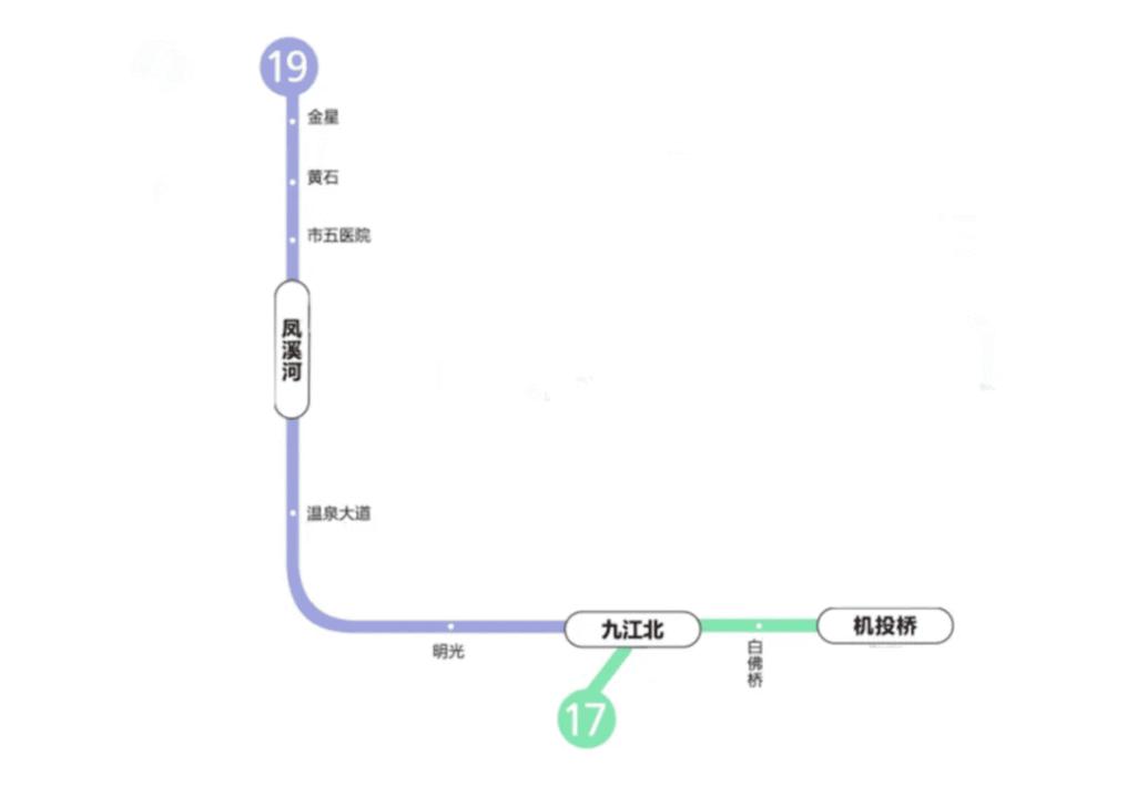 未来,成都地铁既有17号线一期将在九江北站进行拆分,金星站至九江北站为19号线一期,而九江北站至机投桥站为新17号线一期。