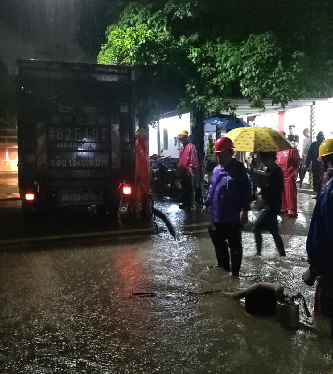 据龙岗区城管局消息,昨夜水深处的路灯已关闭,应急队伍已集中应对。龙岗街道出动环卫、绿化、路灯三组应急人员应急抢险。