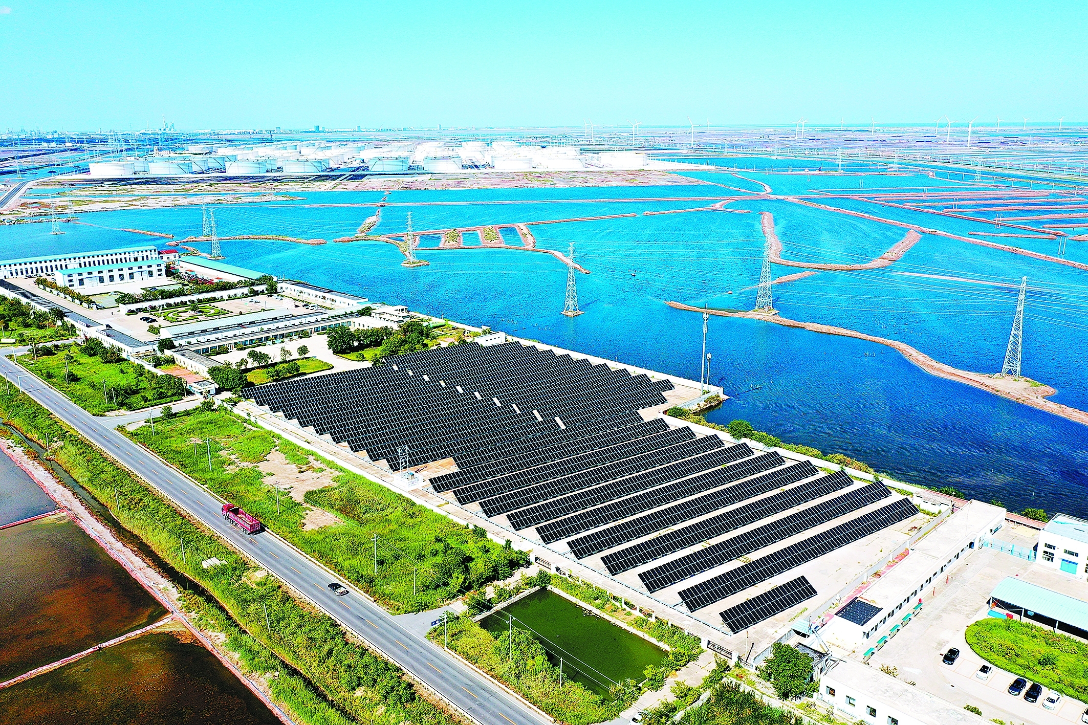 胜利油田海洋采油厂把光伏发电作为用能结构调整的重要抓手,因地制宜利用办公区、废弃厂房等场所合理规划可用资源,推进项目建设,助力绿色发展。目前,该厂供应站周边区域光伏项目并网一年,累计发电340余万千瓦时,有效减少二氧化碳排放。图为近日该光伏项目现场。张 灿 摄 张彦辉 文