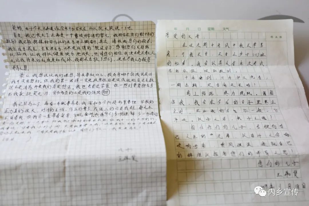 进入内乡高中,学习难度骤增,压力增大,每次过星期回家,王祎斐的姐姐就陪伴左右,担任他的知心朋友,延续她多年来对弟弟从不间断的关爱。从吃喝用度到生活琐事,从为人处事到学习考试,都在姐姐的交流范围。姐姐还着力培养他男子汉气概,锻炼他坚强的心理和严格的自律,使他能够自觉抵制电子游戏和恋爱的诱惑,用心专一,笃学奋进。上学期间,虽然没有上过任何课外培训班,但是他成绩好,一直出类拔萃,还多次被评为“三好学生”“优秀学生干部”。对于姐姐,王祎斐是感激的,在班级召开的家长会上,他写下了心里话:“谢谢你们的理解与支持,给我营造了和睦温馨的家庭氛围,让我专心地大步前行。请放心,我一定是一条龙。”
