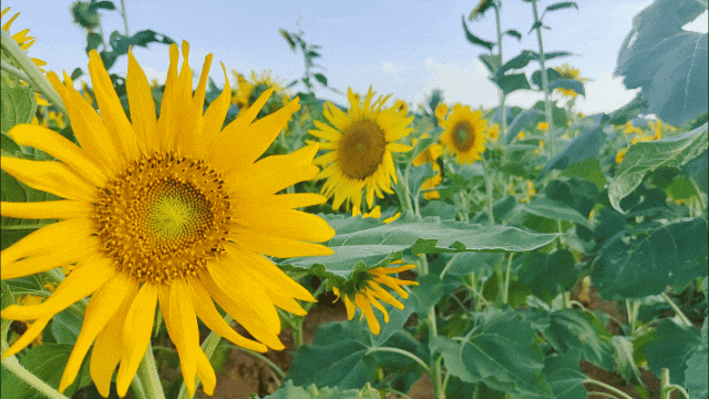 阳光照耀下,放眼望去,一株株向日葵迎着阳光微微颔首,浑身都仿佛渡满了金光呢,看着就让人生出了无限希望,心情都会豁然开朗!