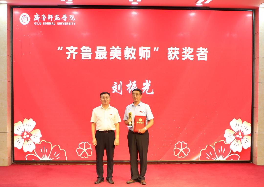 表彰颁奖典礼上,林松柏亲自为马克思主义学院刘振光教授颁授“齐鲁最美教师”奖杯和“齐鲁师范学院最美教师”荣誉证书,并向他表示了由衷的祝贺。日前,刘振光教授获评2023年度“齐鲁最美教师”荣誉称号,该荣誉从全省140多万名教师中推选出来,全省共评选出10名,高校仅有4人入选。