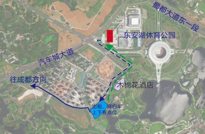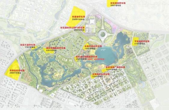 为避免交通拥堵,网约车、出租车出行建议定位:东安湖公园地面停车场。