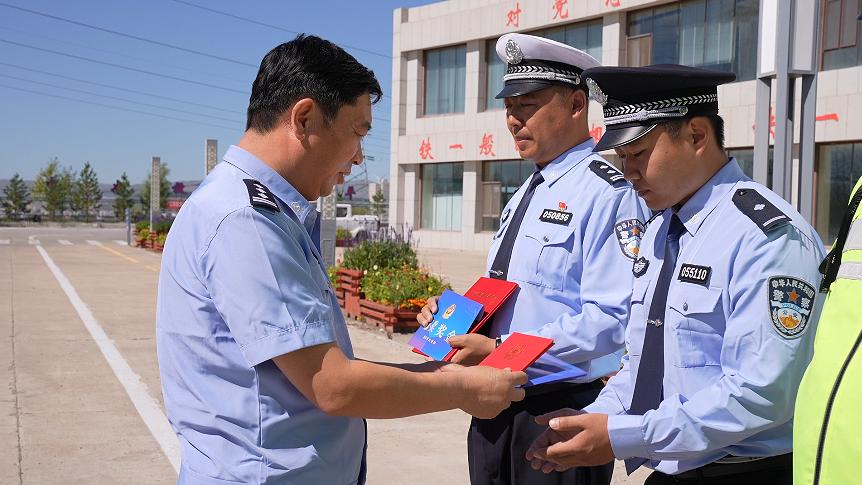 并代表通辽市公安局党委为获得嘉奖的民辅警代表颁发荣誉证书,鼓励受到表彰的民辅警继续保持昂扬斗志、饱满精神和优良作风,充分发挥先进典型风向标的作用,为全面建设平安霍市贡献公安力量。
