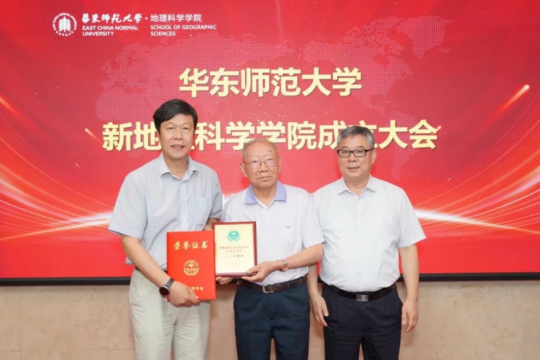 会上,中国地理学会理事长、中国科学院院士陈发虎为华东师大教授刘君德颁发“2020-2021年度中国地理学会科学技术奖-终身成就奖”。本年度,全国共有6位科学家获此奖。刘君德教授也是华东师大第7位获得该奖的地理学家。华东师大陈吉余院士、钱今昔教授、严重敏教授、许世远教授、沈焕庭教授、张超教授曾先后获奖。当天下午,由中国地理学会、华东师范大学共同主办的地理学科发展研讨会暨焕庸地理大讲堂活动以“传承·卓越:地理学综合研究与地理学科发展”为主题,借华东师范大学新地理科学学院成立之机,旨在促进地理学科发展,推动地理学综合研究,加强地理学理论方法建设。会议由华东师范大学地理科学学院党委书记王军教授主持。