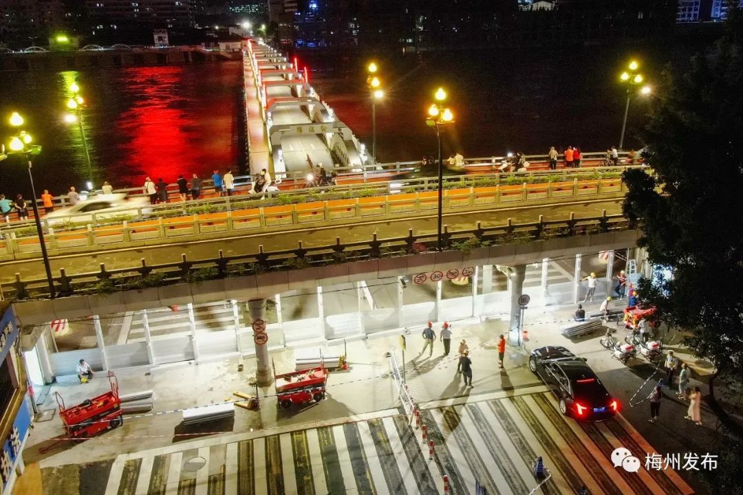 7日晚,梅江桥南端连夜下闸。