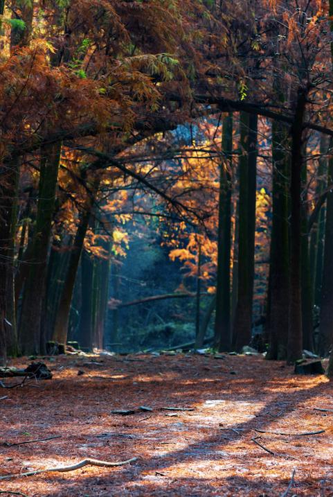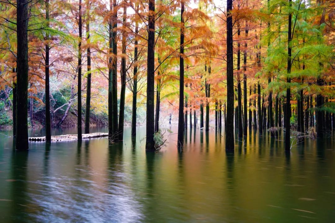 深秋时节前去,水杉也已变黄,一层又一层的颜色在山间铺开,更是令人赞叹。