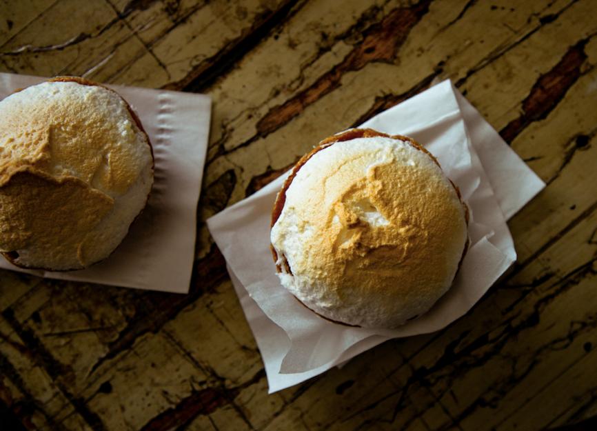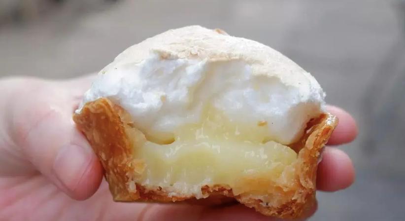 /奶油小攀/奶油小攀是类似蛋挞的绍兴特色名小吃,它的造型瞧上去像一个圆圆的白色礼帽,一共有两层,上面宛如一座雪山,下面则像一只小碗。