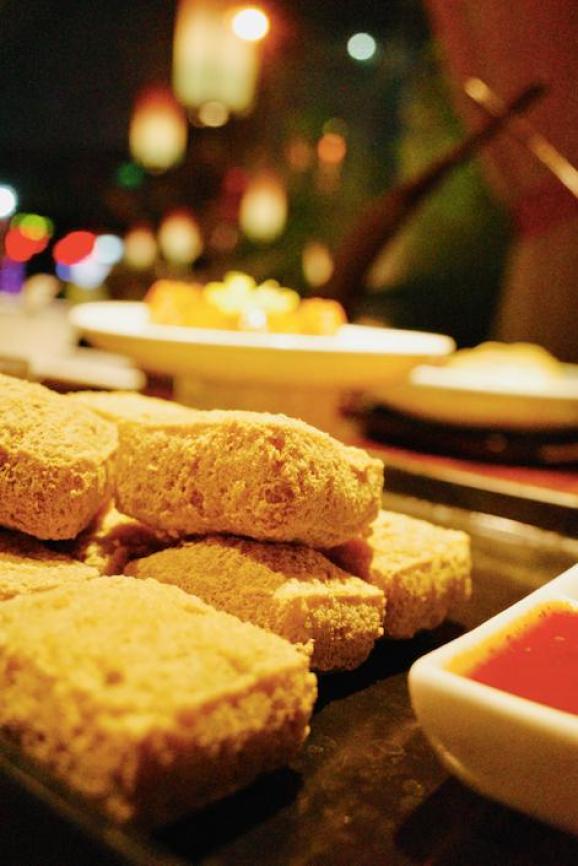 外表酥脆,咬开后却无比的软,然后再淋上甜酱或者辣酱,口感立即被提升。