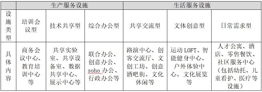 对应创新型产业功能的多样性和灵活性,在传统工业用地配套基础上,给予用地功能配比更大的弹性空间。参考国内外创新产业园(地块)功能配比,建议将创新型产业用地的配套设施比例放宽至30-40%(表1)。鼓励产城融合,允许创新型产业用地建设一定比例只租不售性质的人才房。考虑创新人群的生活方式和特征,引导增设多元共享空间和精细型配套(表2),同时增加相应的配套要求和鼓励引导措施,如通过容积率奖励、达产经济指标折扣等措施鼓励利用建筑灰空间、架空层、屋顶花园建设公共空间。