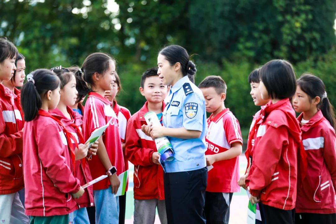贵州省黔西市公安局组织民警在贵州省黔西市雨朵镇龙场小学给学生讲解预防电信诈骗等法律法规知识。中国教育报-中国教育新闻网通讯员 周训超 摄