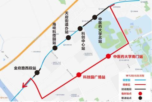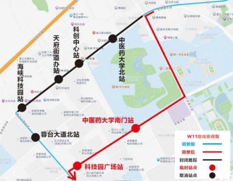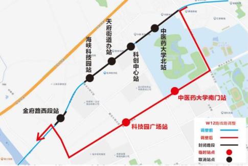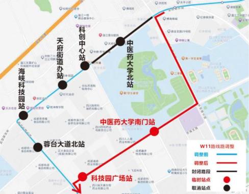 取消站点:中医药大学北站、科创中心站、天府街道办站、海峡科技园站、金府路西段站