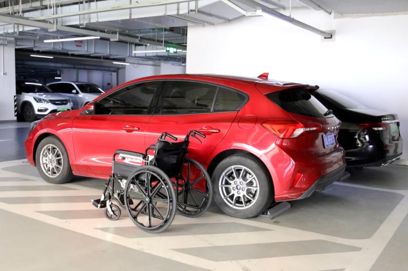 在广场层和地下停车夹层设置了53个无障碍机动车停车位,各车位内喷绘了醒目的无障碍标识,车位一侧留有轮椅通道,宽达2.5米、长达6米的宽敞空间更便于停泊。