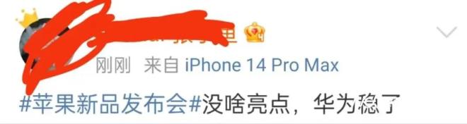但与昔日苹果发布会后有关新品的词条霸屏微博热搜不同,当天在发布会后仅一小时,“苹果发布会”词条已经跌出微博热搜前二十,而排在第一的却是“华为发布会”。有网友表示,“看完苹果发布会,这下华为稳了。”