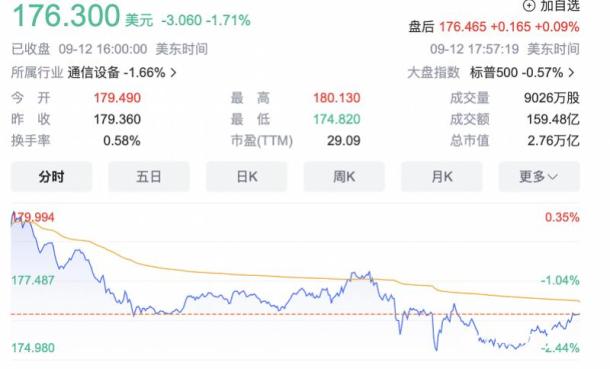 记者注意到,这一次iPhone 15系列的变化主要集中在芯片、接口、影像系统和机身方面。同时,屏幕方面也仅有微小的变动。相比起去年的iPhone 14系列“灵动岛”设计面世让人惊艳,纵使此次iPhone 15全系改用灵动岛,其内容更新方面也让人稍感失望。或也因此,当天苹果股价开盘时也一度微涨,但发布会后,苹果股价曾跌超2%,截至今早8时许,苹果下跌1.71%,股价为176.3美元。