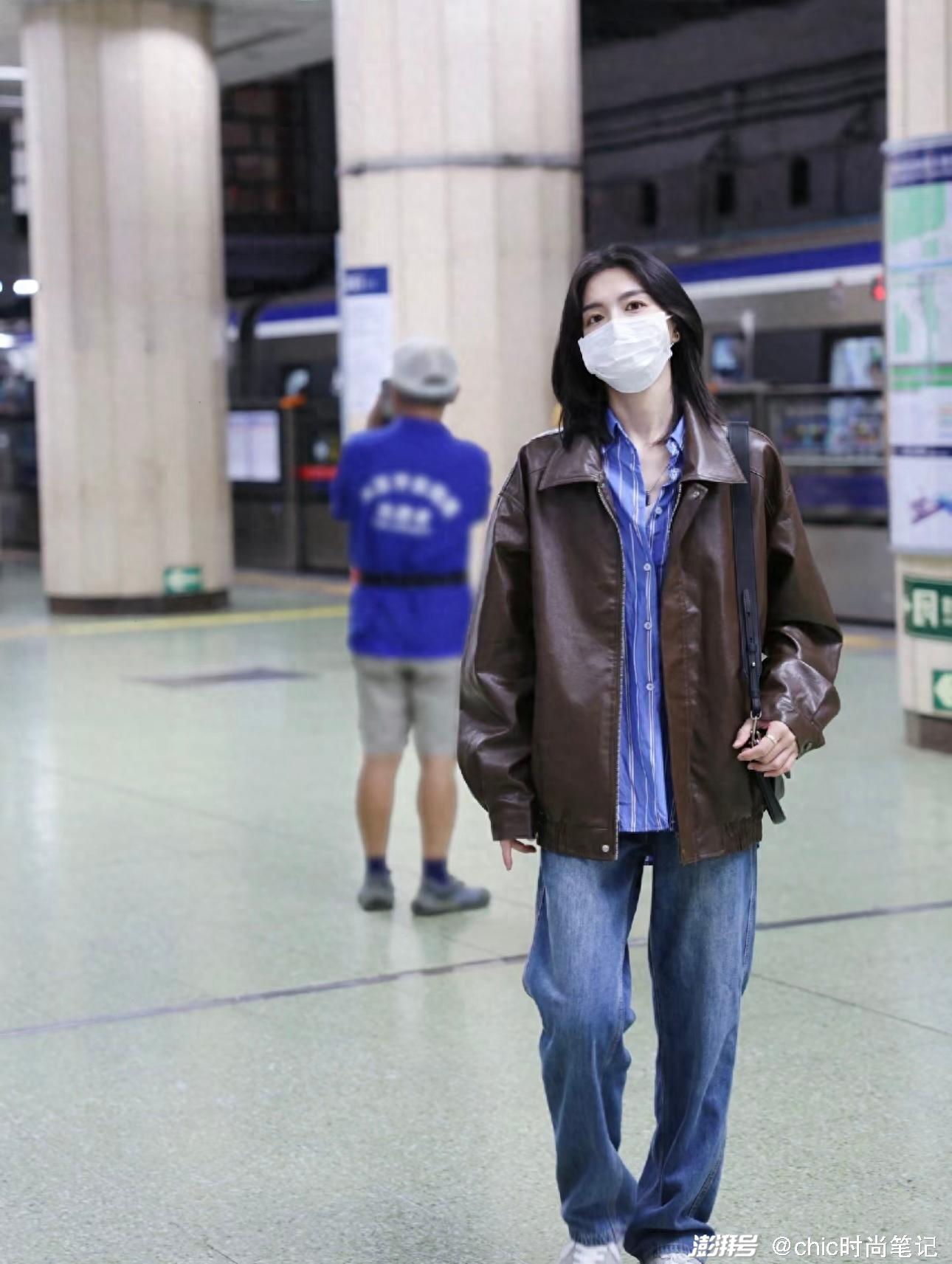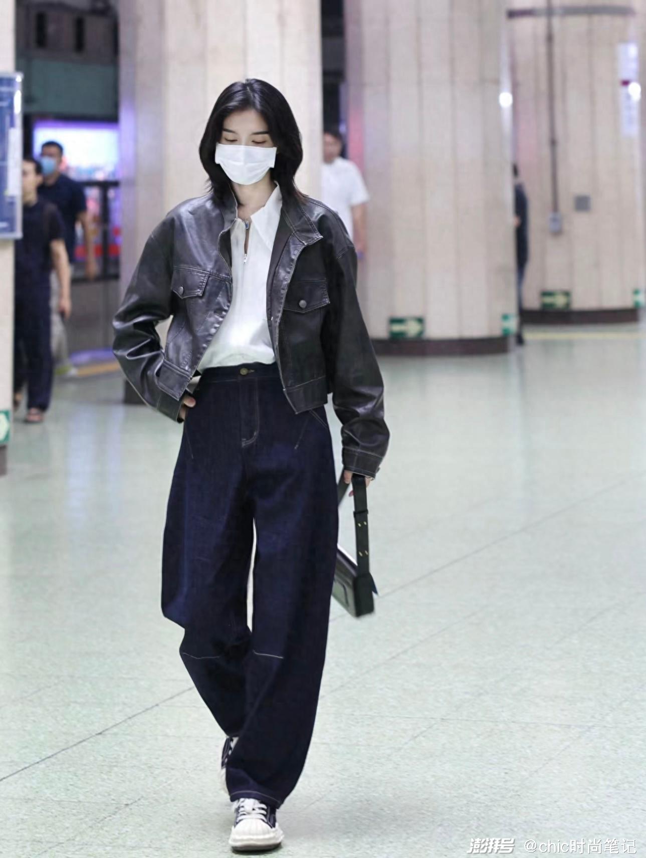 秋天少不了的便是皮衣外套,也是比较百搭的单品,下身选择牛仔裤或者a字短裙,小白鞋的加持更加随性、慵懒。