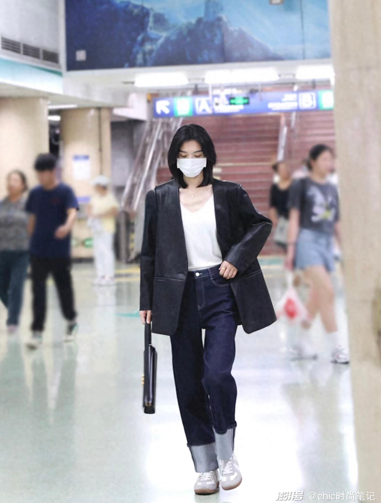 长款皮衣外套会比较显成熟,非常适合职场小姐妹,沉稳而内敛。这几套穿搭有点类似白百何的风格,有一种法式的简约魅力。