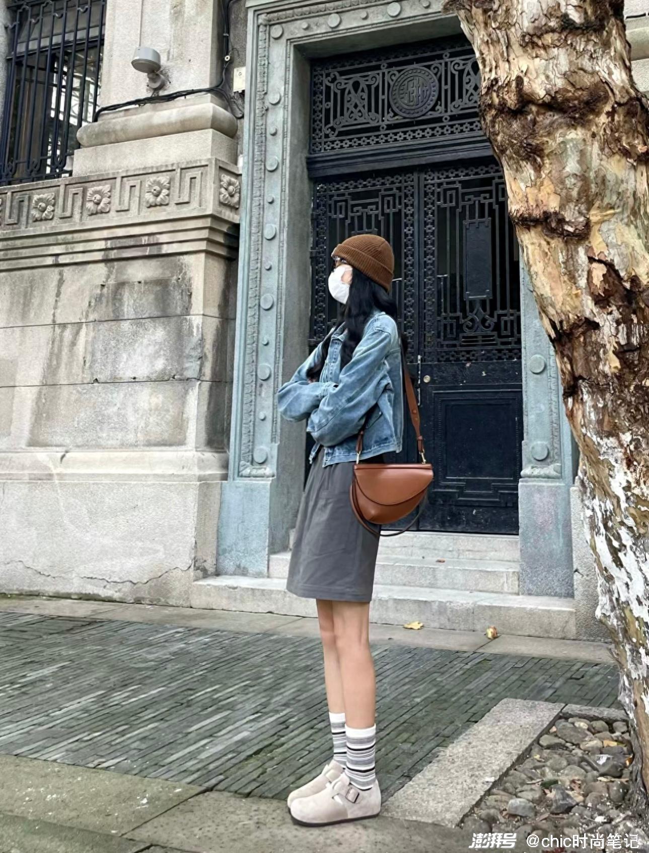 牛仔搭配短裙,少了一点帅气,多了一点柔美。看似简单的搭配,但整体又能展现出时尚感。秋天的元素再搭配在一起,完美拿捏。