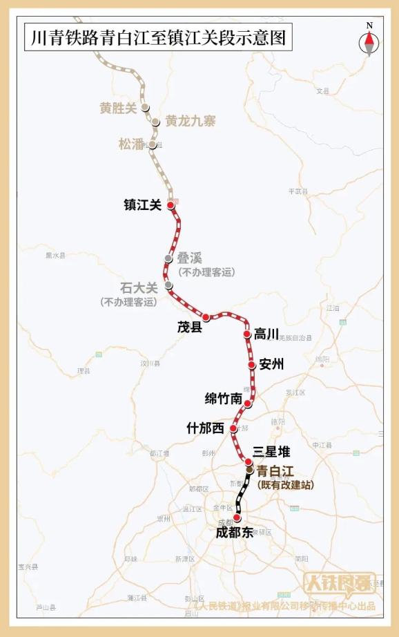 全线共设青白江、三星堆、什邡西、绵竹南、安州、高川、茂县、石大关、叠溪、镇江关10个车站。