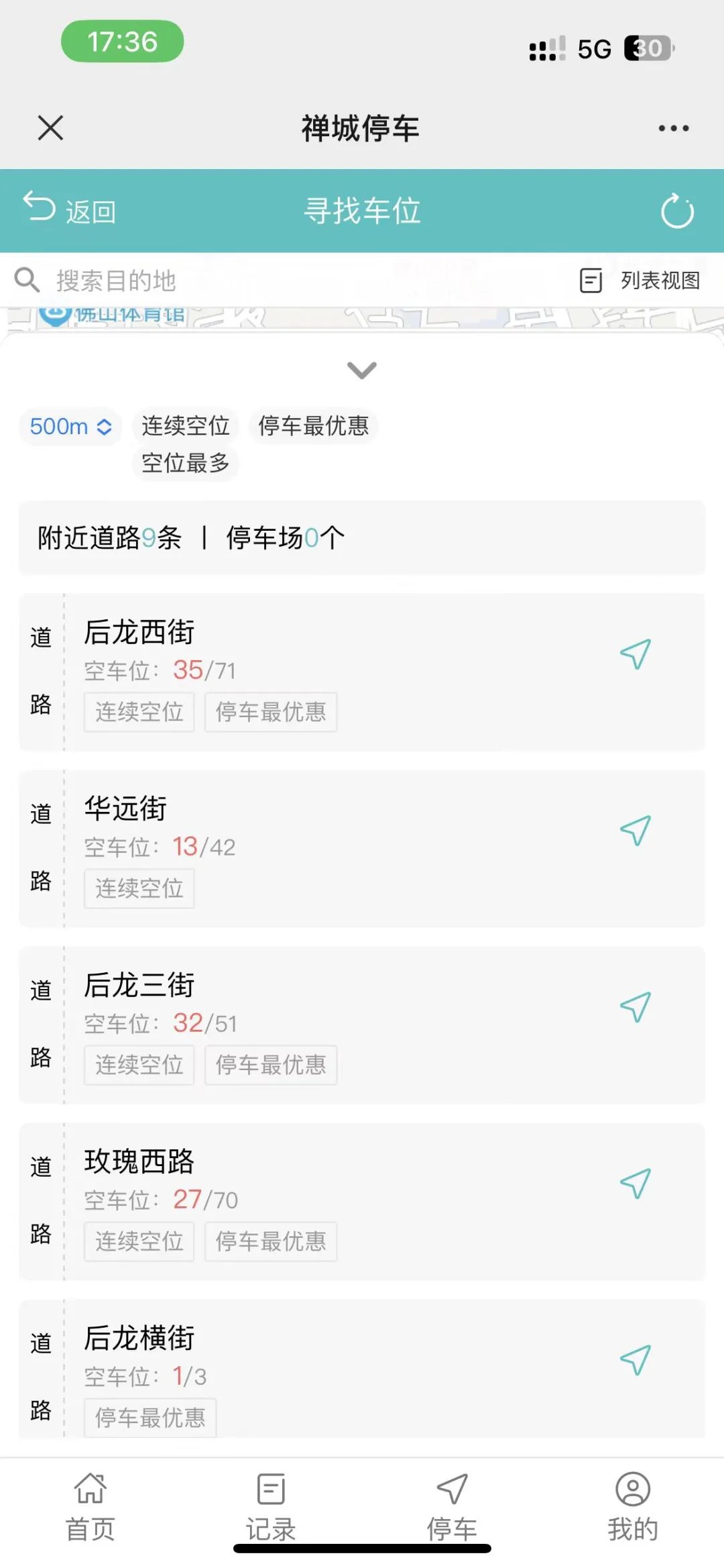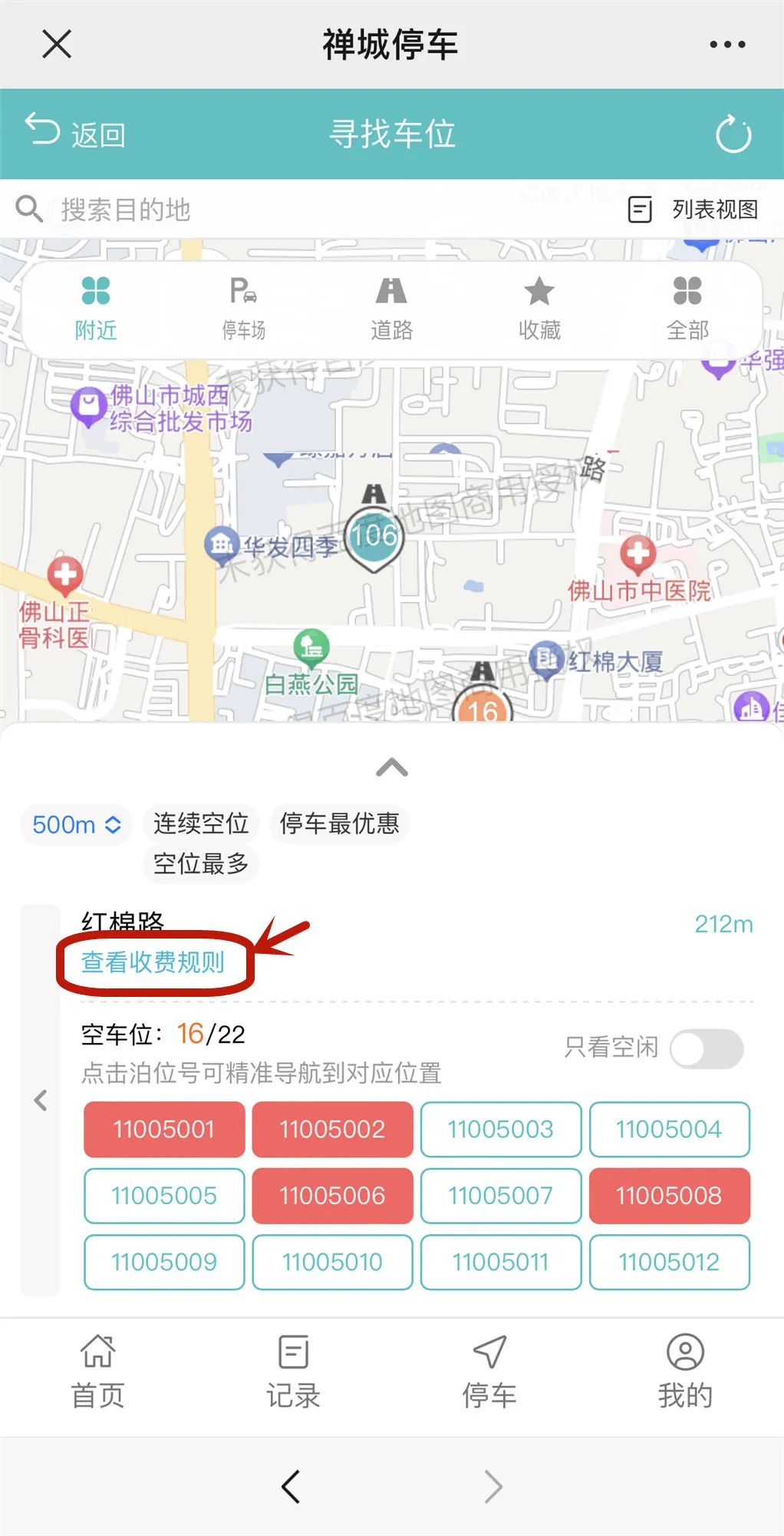 就可看到周边的停车位信息