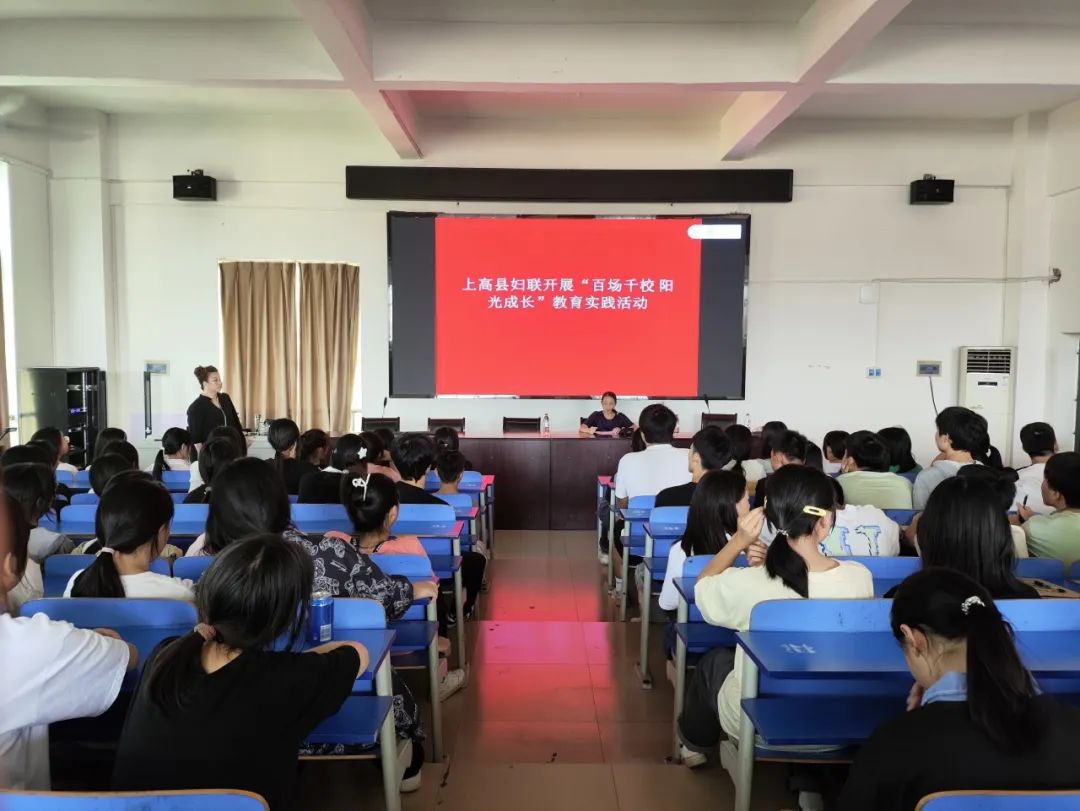 9月8日,上高县妇联到上高县中等专业学校开展“百场千校 阳光成长”实践教育活动。活动中,邀请南昌静心社创始人、国家二级心理咨询师陈虹以《让成长更有力量》为题,为200余名学生讲授心理健康知识。