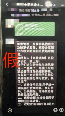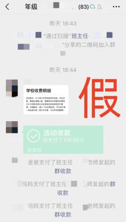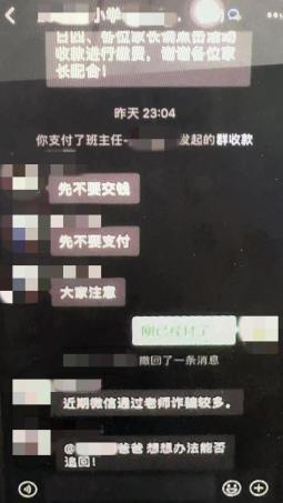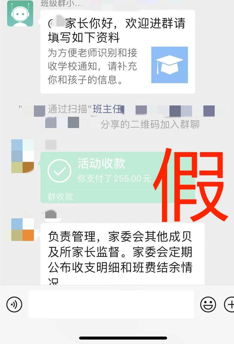 诈骗分子先通过各种办法找到家长群冒充学生家长进入学校班级家长群