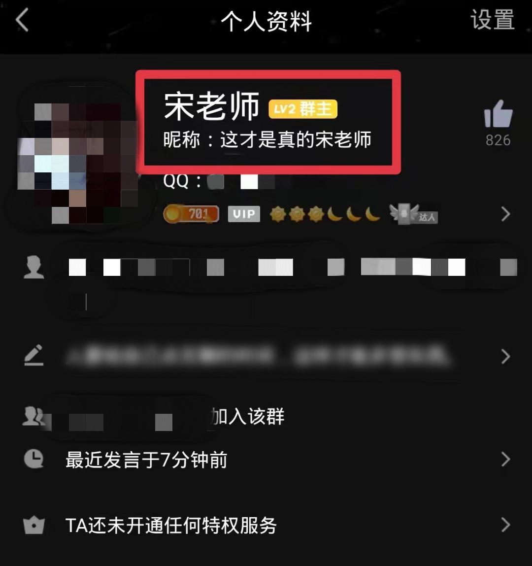这样很简单的一个操作,就可将真正的老师帐号标注出来。假定群里有骗子要冒充老师行骗,那么他只能根据老师的群昵称将自己的群昵称也设置为“宋老师”,而不是你给老师设置的“我儿子的克星,富有责任心的宋老师”,这就很容易判断这个“宋老师”是骗子无疑了!骗子看似高明的伪装,也就成了“皇帝的新装”。快,各位家长们快快开动脑筋,给家长群里的老师们想一个足够个性(骗子想不到)又满怀敬意的备注名吧!