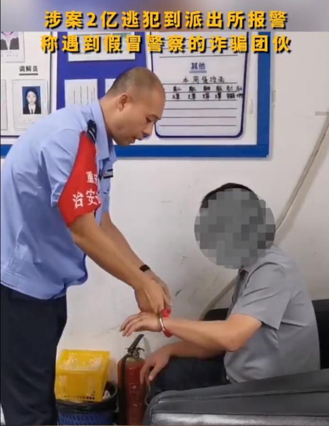 2、涉案2亿网逃人员报警称被“假警察”诈骗 近日,重庆渝北,男子江某到黄泥塝派出所报警称遇到“假警察”对自己实施诈骗,民警对江某的身份信息登记时,发现江某竟是一名涉嫌职务侵占的网逃人员,涉案金额达2亿元。随后江某被当场控制。目前,该案件正在进一步侦办中。(@公安部刑侦局)