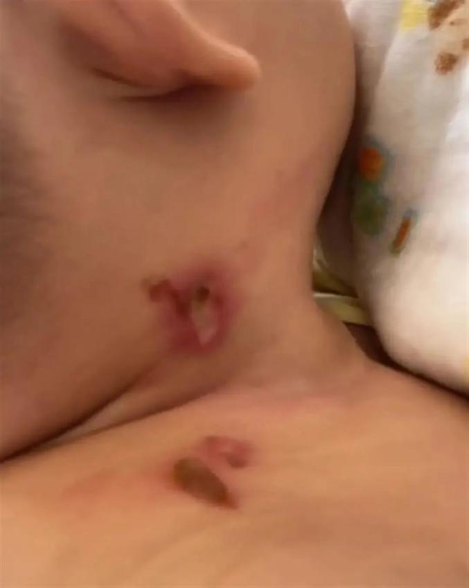 从黄女士在网上发布的视频中能看到,孩子的脖子上出现大片红斑,还有一些小水泡。黄女士表示,孩子还小,脖子和肩膀上的肉容易摩擦,导致水泡裂开、流脓,消毒的时候,孩子的哭喊令她非常难受。据了解,黄女士所住单元楼共26层,每层5户。小区装有监控,但只能覆盖一楼区域。物业工作人员表示,以前曾多次在微信群和朋友圈提醒住户,不要往楼下扔烟头、垃圾等,小区内也有多个警示牌,不过高空没有摄像头分布。