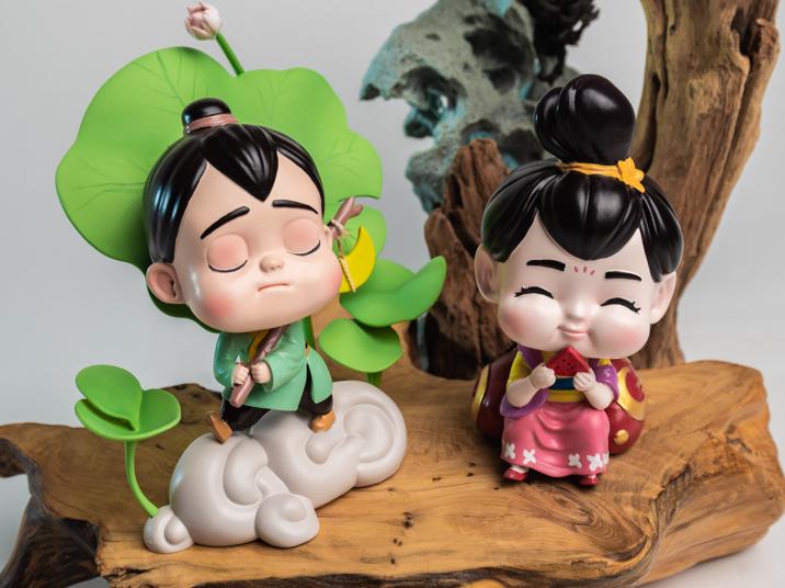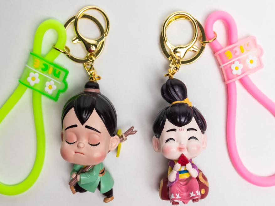 原创虚拟角色IP“小七”“小夕”,象征着人们七夕时节永结同心的美好向往。这个磨喝乐系列不仅有手办,还有扇子和钥匙链哦!超级可爱~