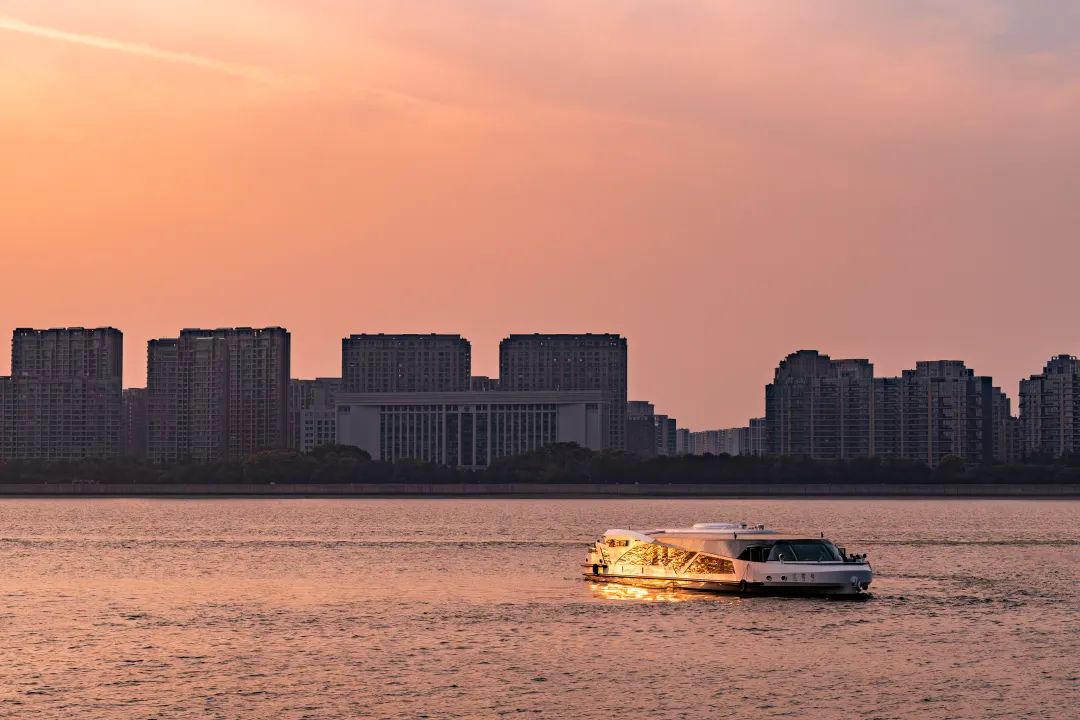 在业态方面,这四艘“江”系列的主题游船将突破杭州纯观光或观光加餐饮的水上游船单一运营模式,创造性地将商务定制、文化演艺、品茗赏乐、时尚潮流等多种主题业态与游船相结合——这意味着市民游客在乘船时再也不会感到乏味,一边欣赏三江美景,一边还能品味杭州文化,享受至臻的水上旅游体验。另一艘“新黄龙”号,以西泠印社的印章为原型,整个船身的流线顺滑,呈现曲线美感;到了夜晚更是惊艳,360度全覆盖式“灯光”设计,璀璨如珠、点亮夜空。船舱内的设计也是最大程度贴合乘客需求,空间宽敞灵活,具备从餐饮、商务、观光到个性化定制等多种功能。
