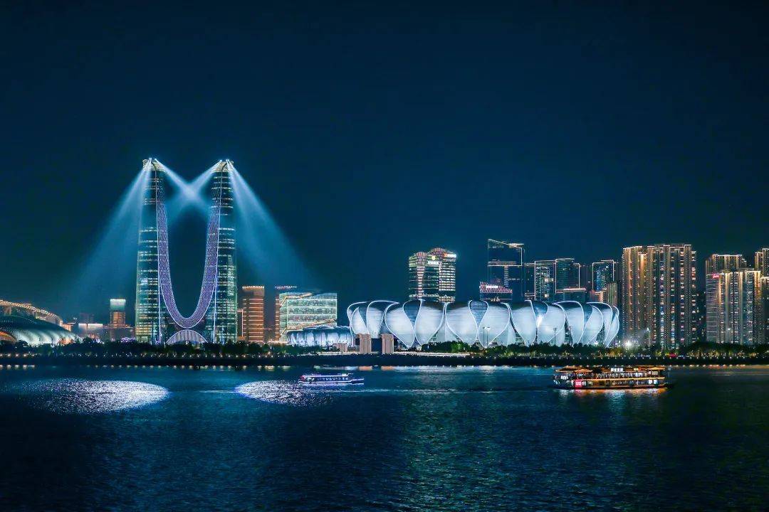 游线行程:亚运村乘大巴出发前往登船码头,经钱江龙、杭州印、西兴大桥、奥体中心、钱江世纪城、杭广电视台、复兴大桥、钱王射潮,赏钱江两岸日月映莲的建设之美,滨江码头下船后乘车返回亚运村。