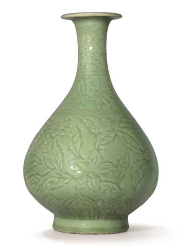明洪武 龙泉青釉划花栀子紋玉壶春瓶