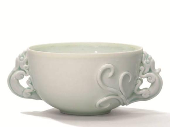 南宋 青白釉螭龙耳杯